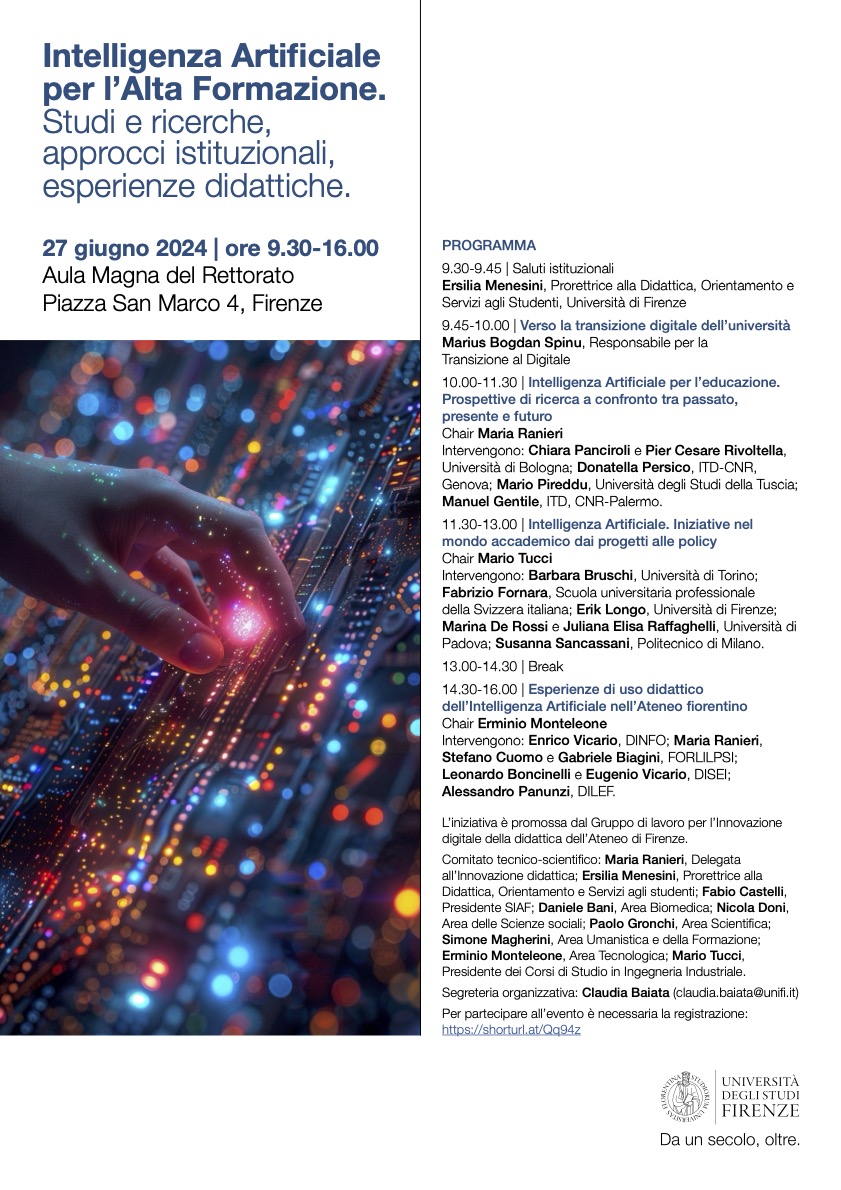 Intelligenza Artificiale per l’Alta Formazione. Studi e ricerche, approcci istituzionali, esperienze didattiche.