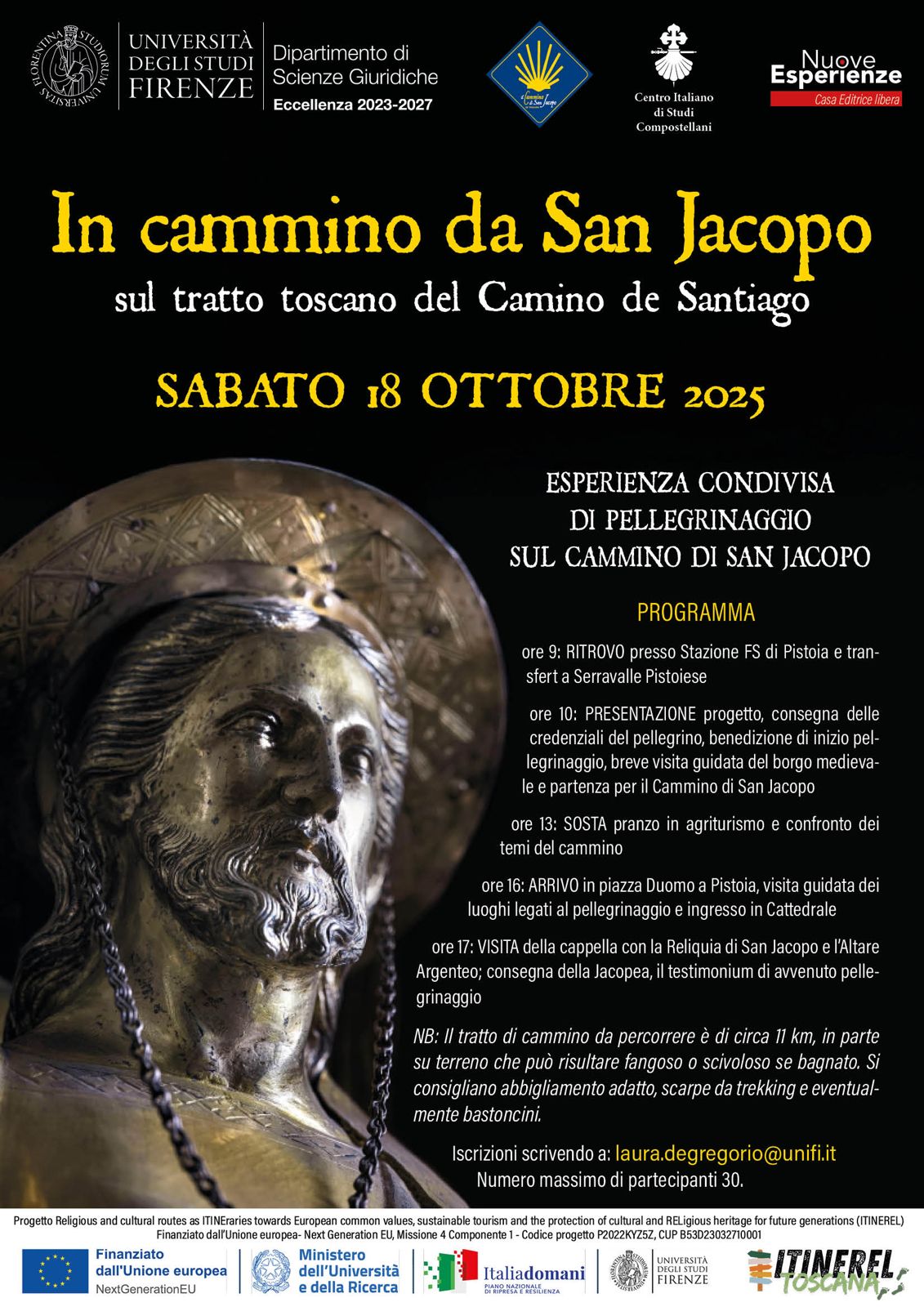 ore 16: ARRIVO in piazza Duomo a Pistoia, visita guidata dei luoghi legati al pellegrinaggio e ingresso in Cattedrale ore 17: VISITA della cappella con la Reliquia di San Jacopo e 'Altare Argenteo; consegna della Jacopea, il testimonium di avvenuto pelle-grinaggio