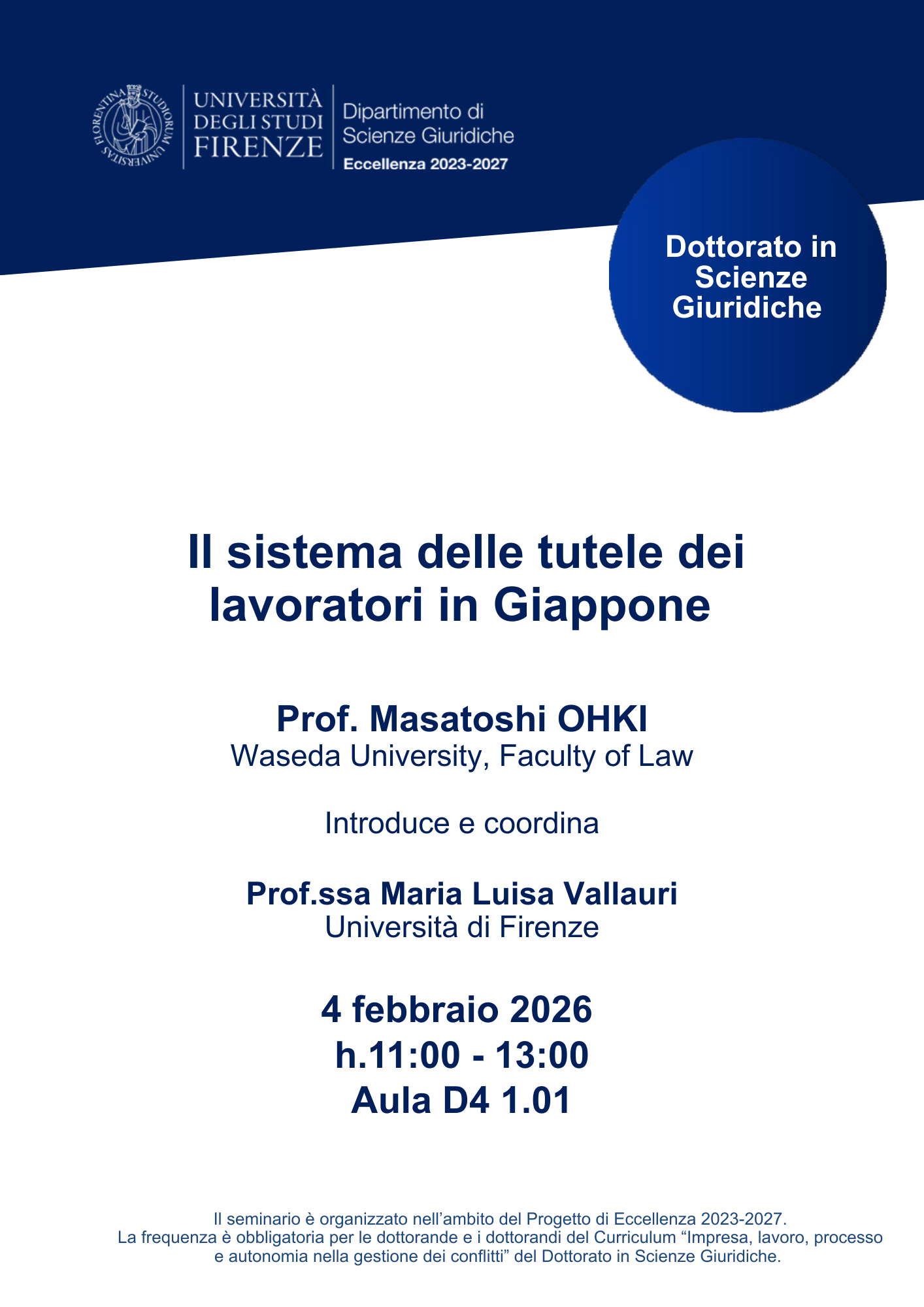 Il seminario è organizzato nell'ambito del Progetto d i Eccellenza 2023-2027.